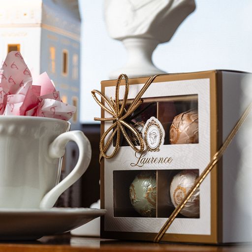 Cutie cu 4 praline de ciocolata rotunde Laurence Chocolate 130g