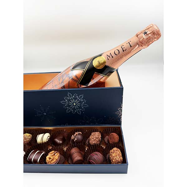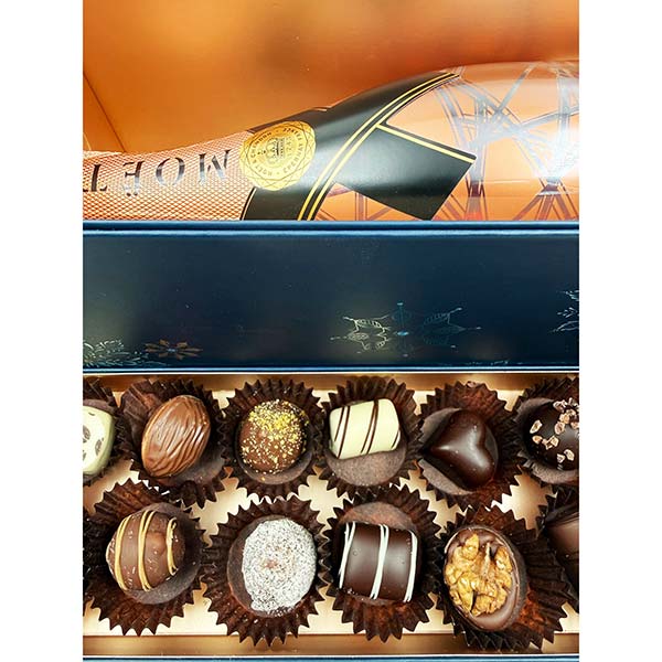 Cadou cu Moet si praline belgiene Bruyerre