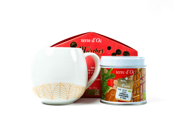 Un ceai verde inspirat de căldura piețelor de Crăciun din Alsacia, de decorațiunile strălucitoare care împodobesc casele și de aromele gourmet care plutesc în aer... Un trio esențial de prăjituri tradiționale, scorțișoară, miere și ghimbir se regăsește în frumoasa ceașcă ce le însoțește!