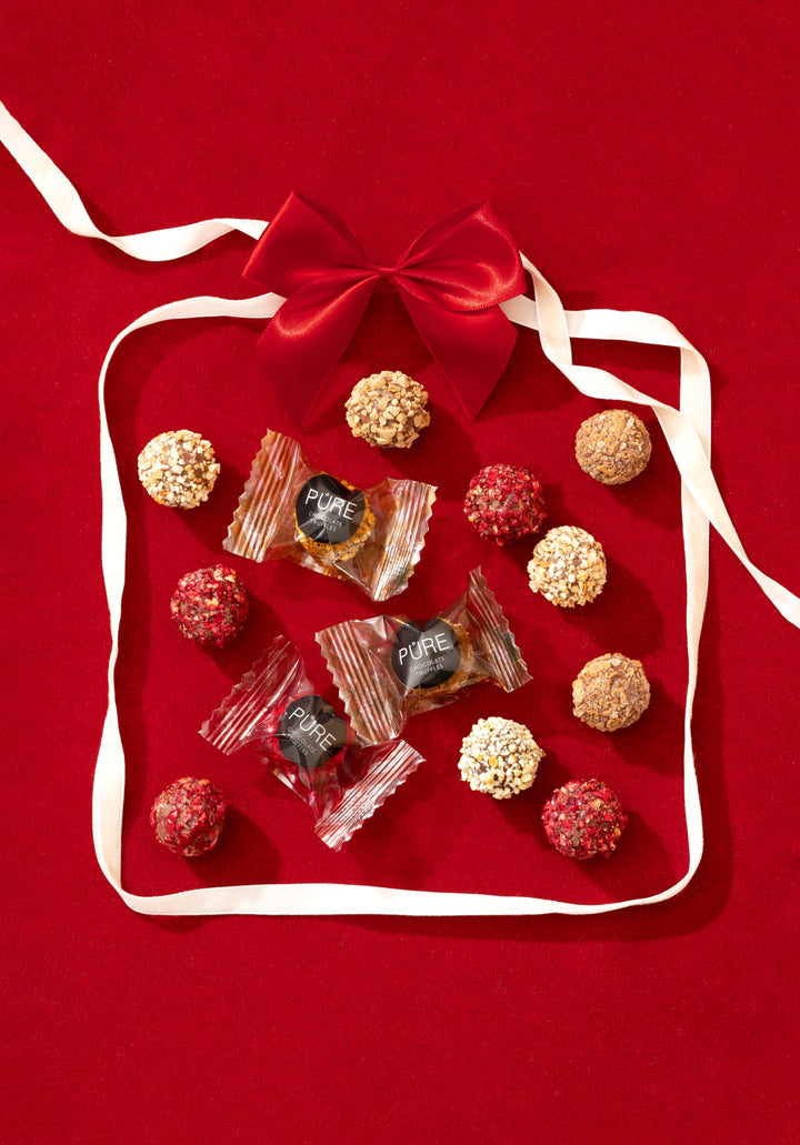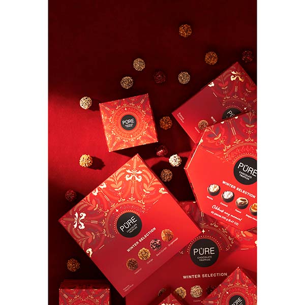 Cea mai draguta cutie de ciocolata, cu 9 trufe cu alune de padure, merisoare si portocale.